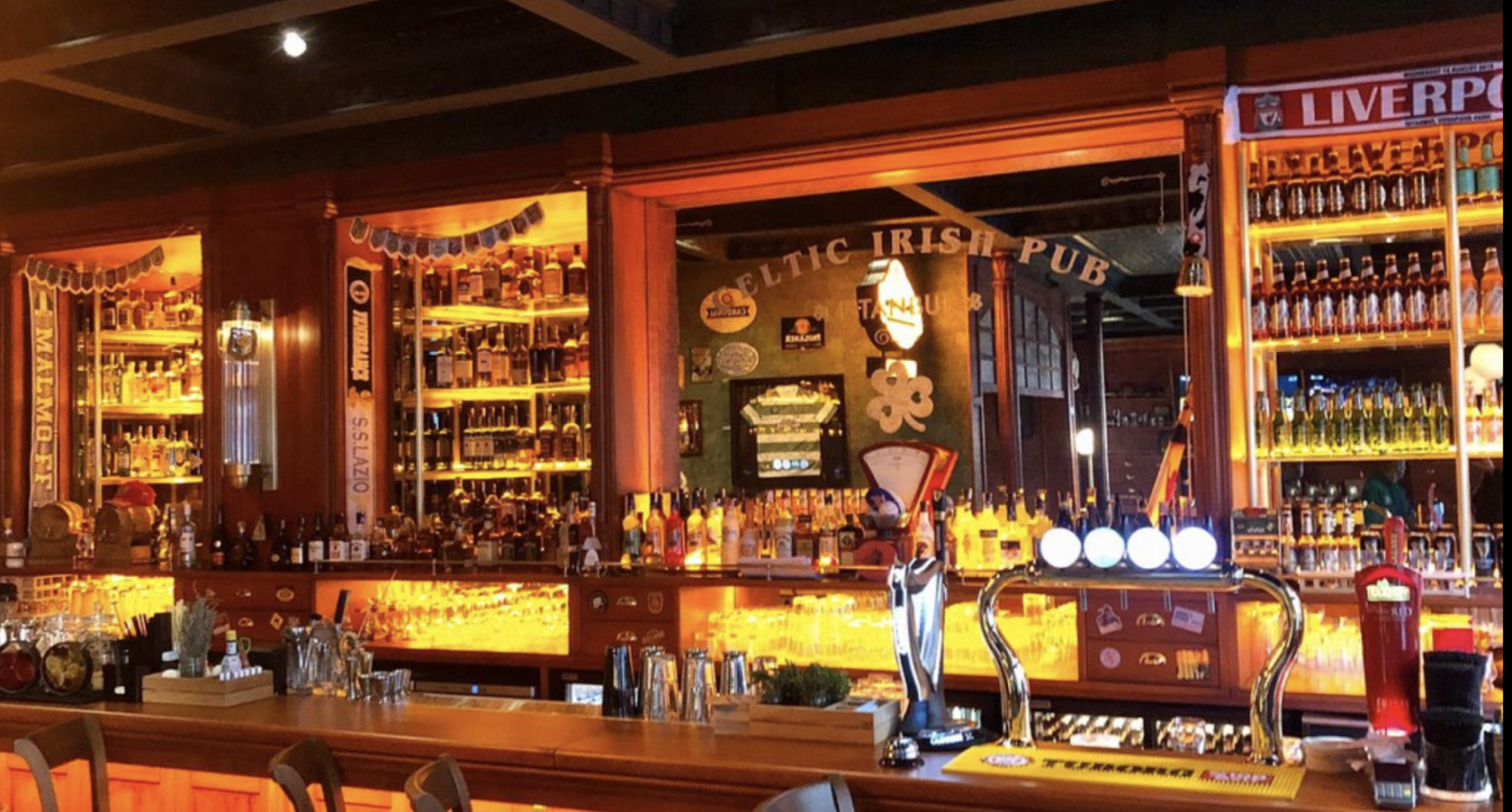Celtic Irish Pub has the best decoration in Europe in Istanbul, all sports competitions are available. A place with an atmosphere where you can play darts, billiards and football. 70 types of beer, American mexican cuisine, pleasant music meet you.